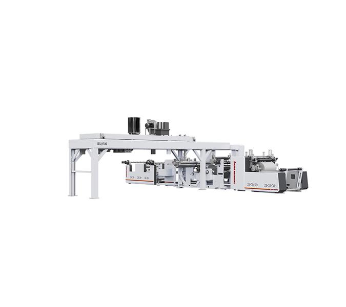 本生产线为高速挤出复合生产线,线速度可达到180m/min,适用干LDPE、PP等涂复级涂膜树脂, 淋膜纸张铝箔、无纺布等为基材的复合生产。广泛应用于药用装膜,食品包装膜,文印办公包装,工程建筑包装及其他复合软包装材料领域等。