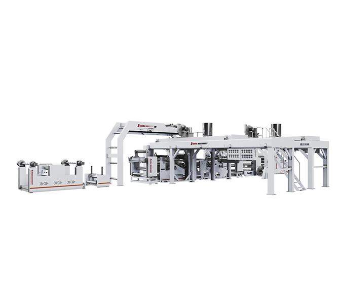 本生产线为高速挤出复合生产线,线速度可达到250m/min,适用干LDPE、PP等涂复级涂膜树脂, 淋膜编织袋、无纺布等为基材的复合生产。广泛应用于药用装膜,食品包装膜,文印办公包装,工程建筑包装及其他复合软包装材料领域等,主要用于塑编淋膜。